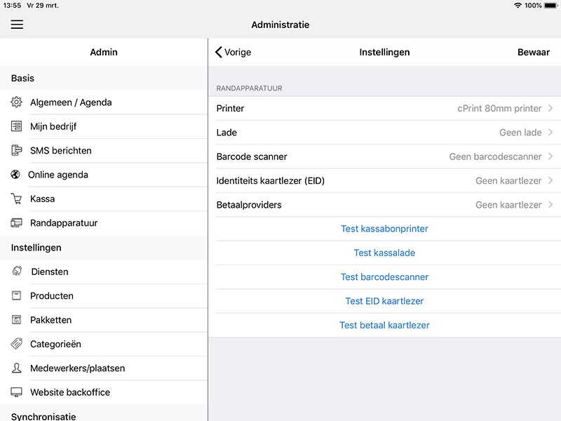 Open nu Posworld app en ga naar Instellingen > Randapparatuur