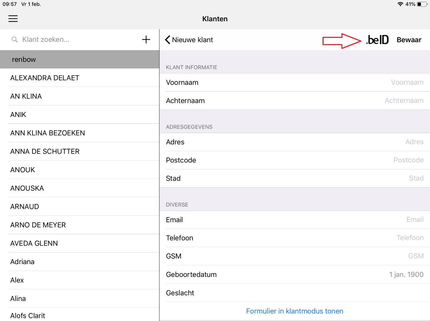 Als je nu naar het klantenbeheer gaat, dan ga je rechtsboven het “eID” logo icoontje zien staan.