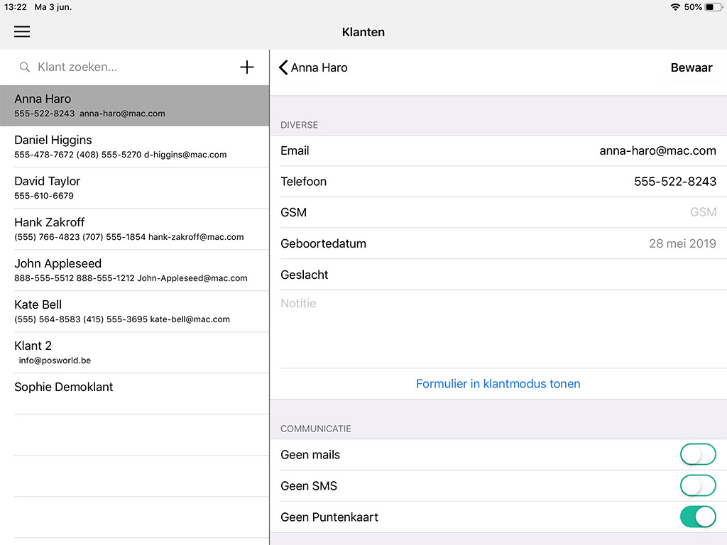 Ga naar de klant , klik op "Klantinformatie" en onderaan vink aan "Geen puntenkaart"
