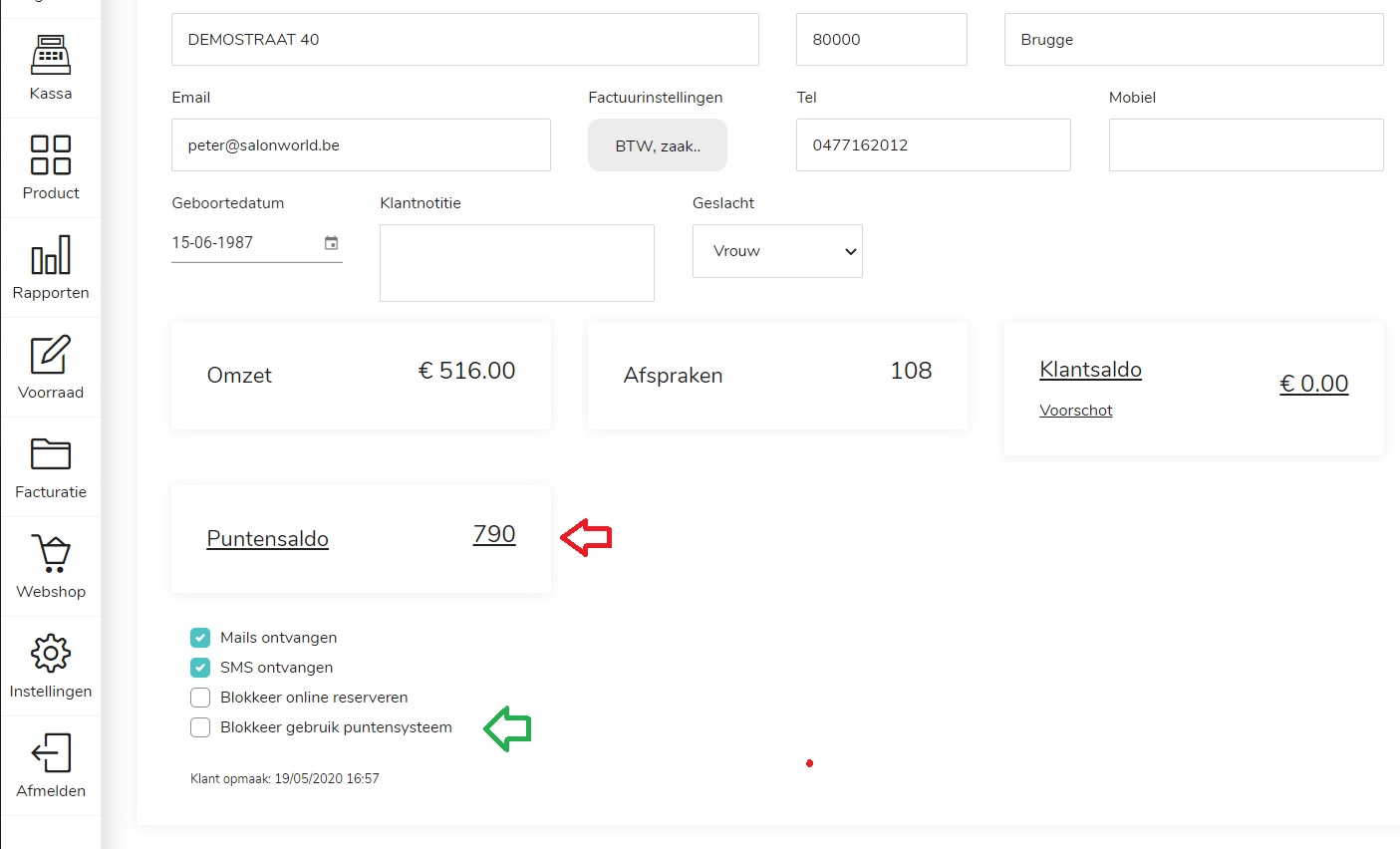 Ter info : Indien je vb bij bepaalde klanten de puntenkaart wenst uit te schakelen vink dan aan "Blokkeer gebruik puntenkaart"