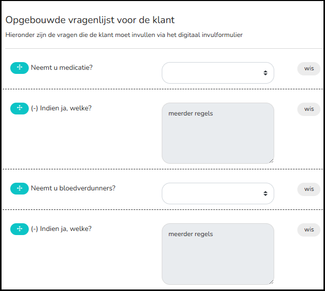 Zo kunt u zelf kiezen welke info u wenst dat de klant hoeft in te vullen via het digitaal formulier.
