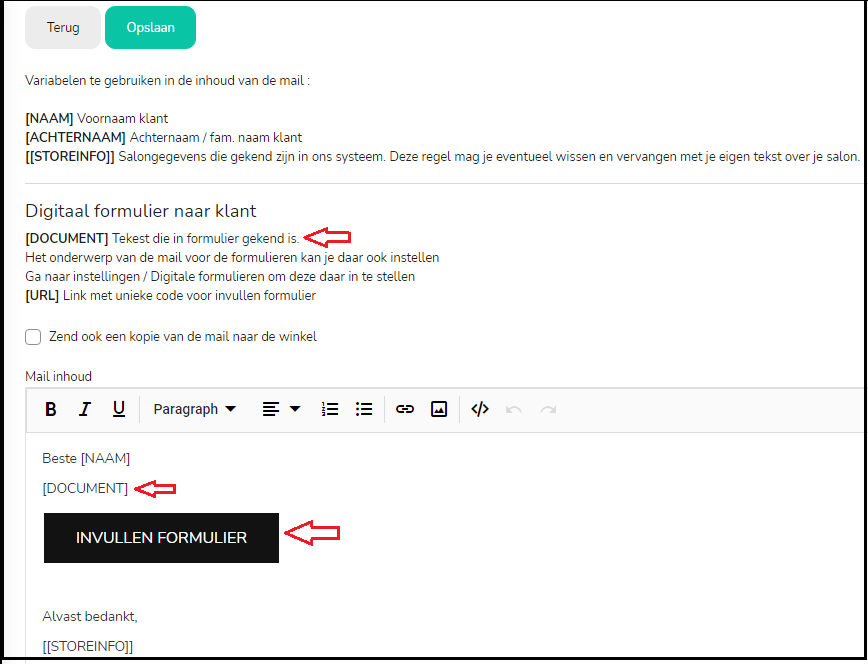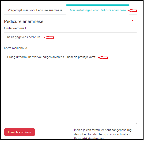 Om deze mail te zien/beheren ga naar instellingen > mailinstellingen >mail digitaal formulier (bijna onderaan pagina)