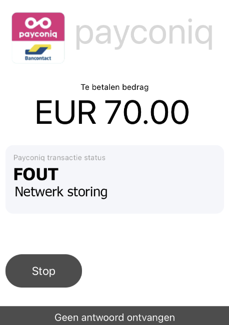 Indien er een betaling niet is gelukt (vb. netwerkstoring, klant heeft de betaling niet uitgevoerd dan krijg je een foutmelding zoals hieronder)