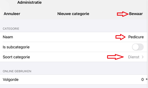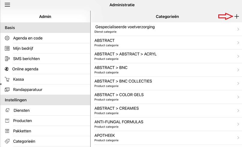 Alvorens diensten/behandelingen te kunnen aanmaken is het noodzakelijk om eerst 'categorieën' aan te maken