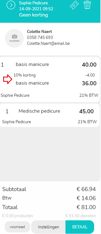 Als je voor een bepaalde dienst of product een korting wens toe te voegen ga je als volgt te werk: