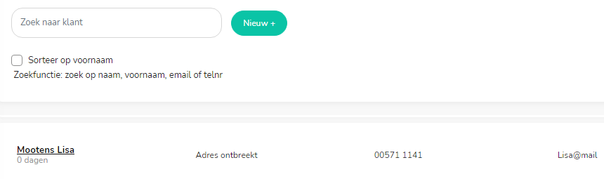 Er is nu automatisch ook een fiche opgemaakt voor deze klant in het klantenbeheer.