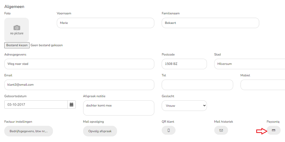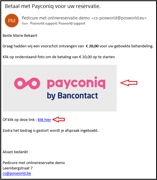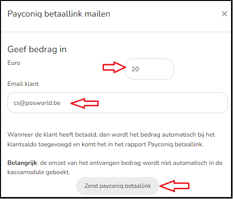 Je kan rechtstreeks vanuit het klantenformulier een betaallink doorsturen naar de klant via Payconiq.