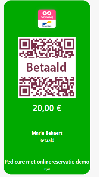 Ze scannen de QR code en wanneer transactie ok is dan krijgen ze melding dat het betaald is.