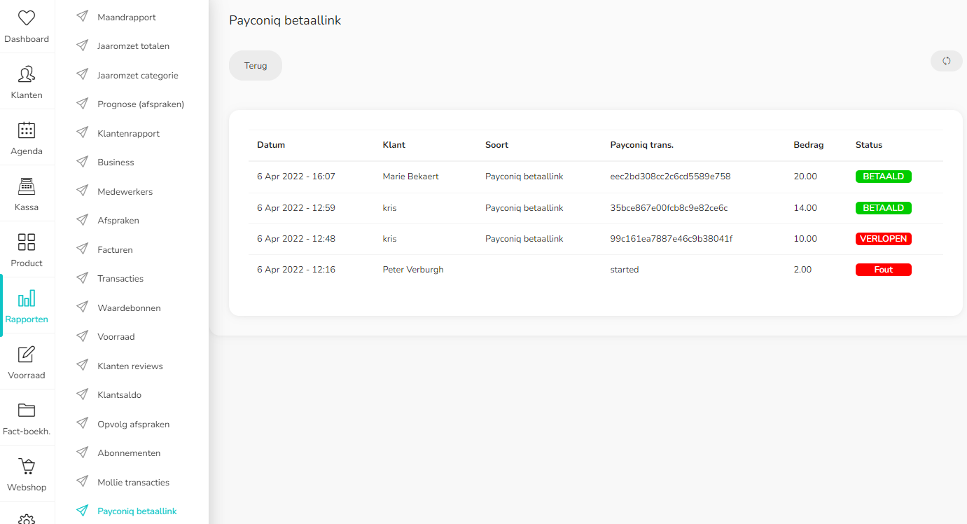 En kan je ook opvolgen in rapport Payconiq betaallink;