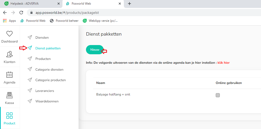 Klik op de knop 'nieuw' om een pakket toe te voegen