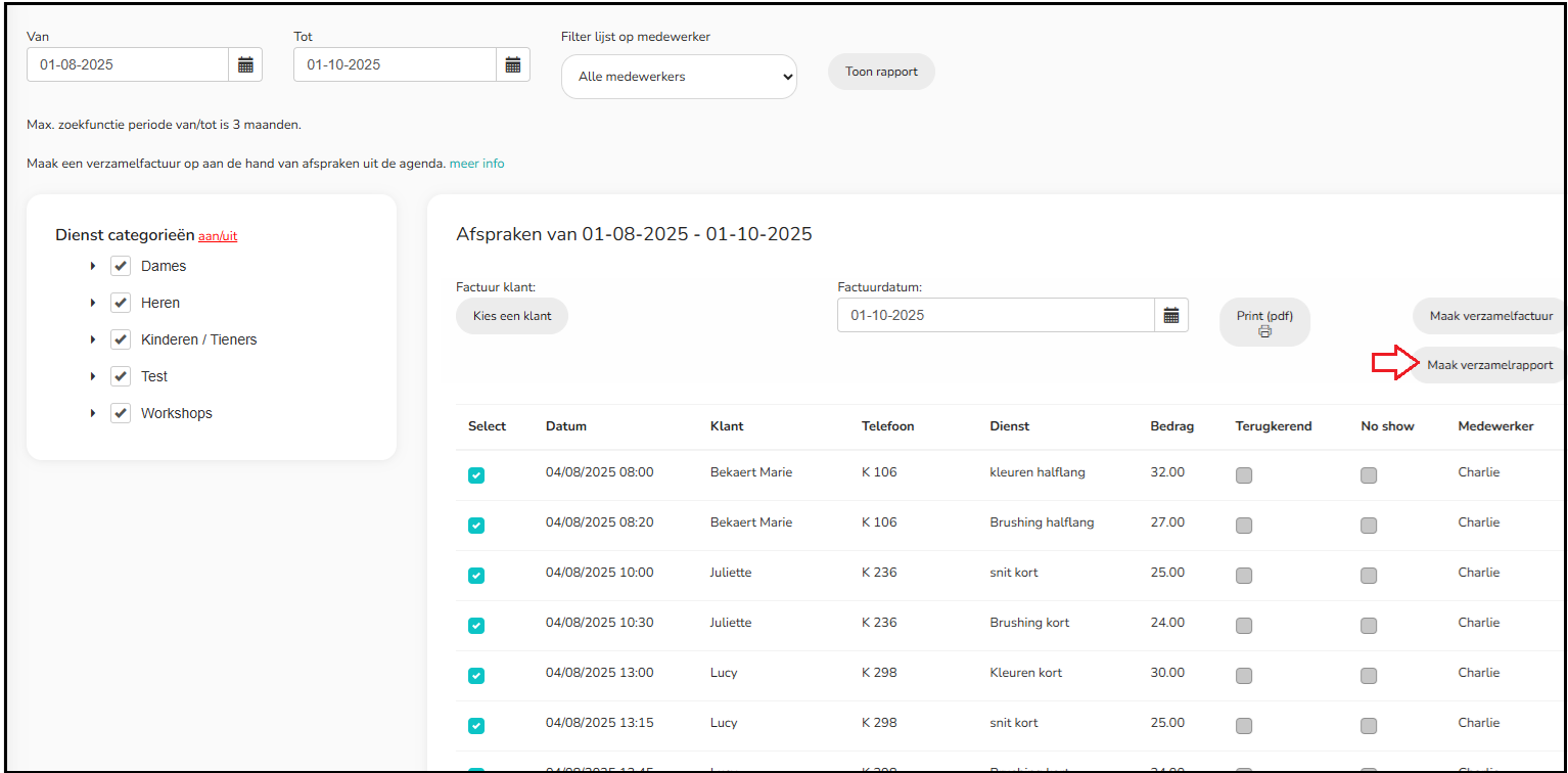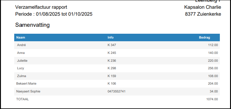 Via verzamelrapport kan je een overzicht bekomen per klant.