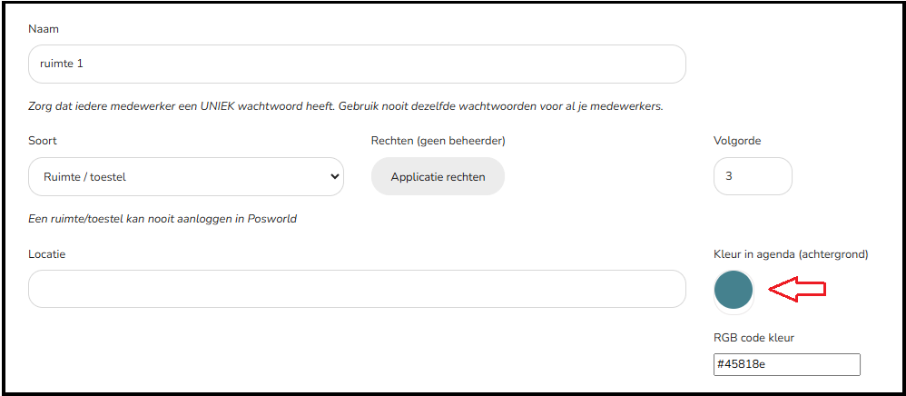 We hebben voorzien dat je elke medewerker en ruimtes een kleurtje kan toekennen.
