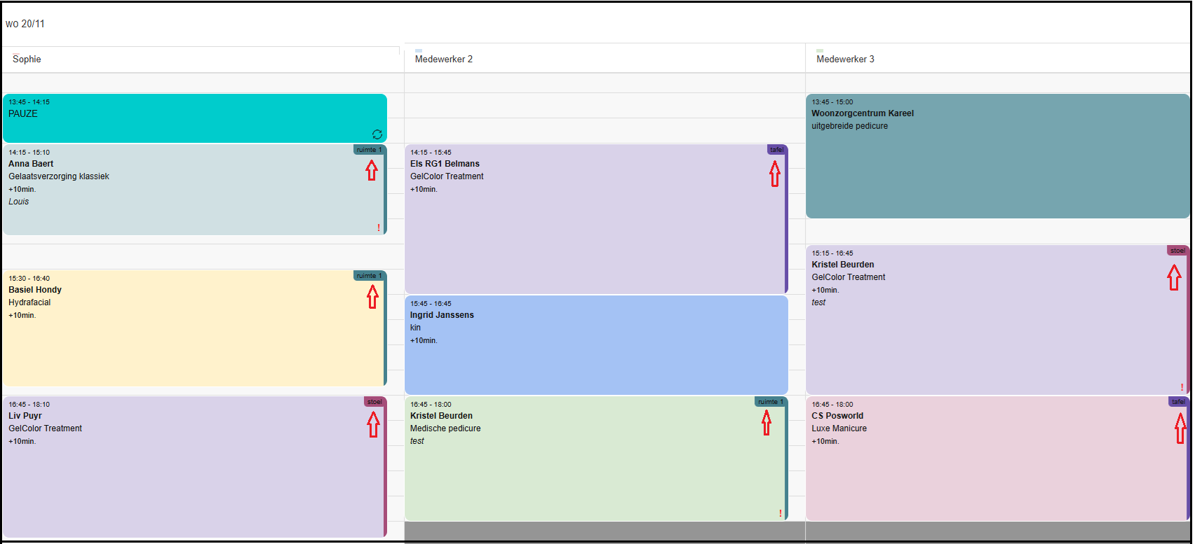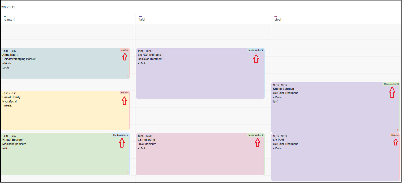 Het kleurtje van de medewerker + naam komt rechts op de de afspraak te staan.