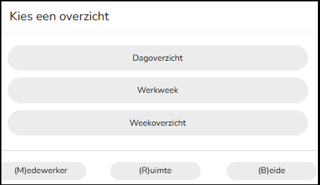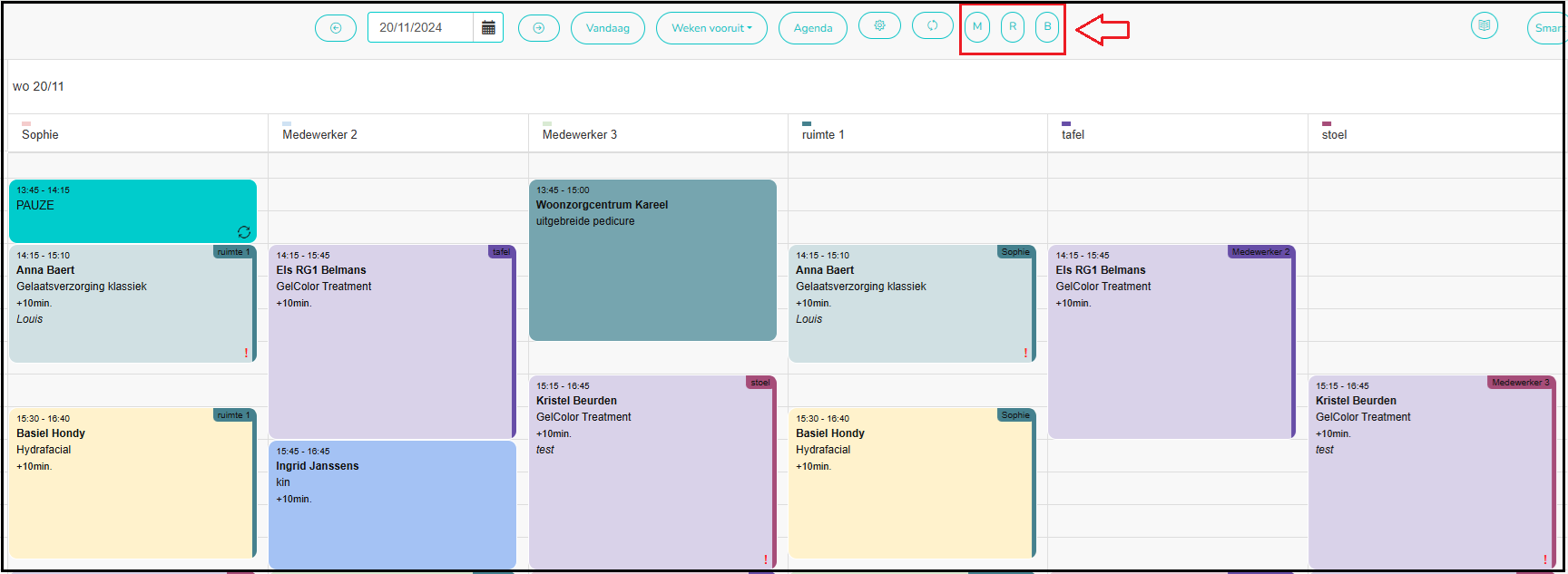 1. Je filter staat ingesteld om zoal medewerkers als ruimtes (B = beide) in agenda te zien.