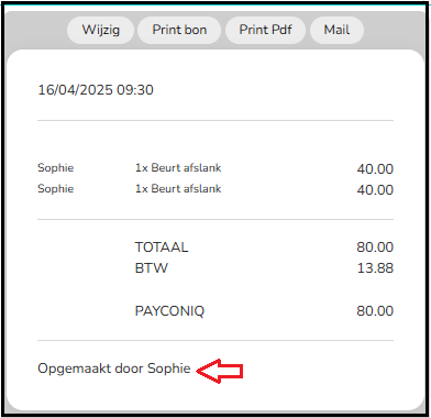 De omzet wordt toegekend aan de medewerker die staat aangeduid bovenaan in kassascherm.