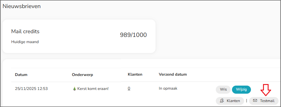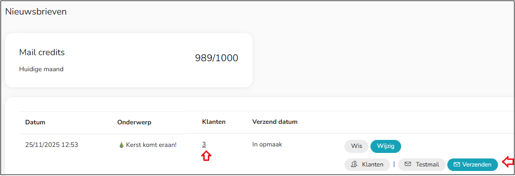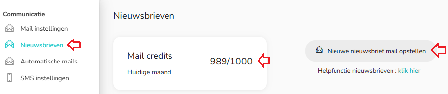 Hier kan je ook meteen zien hoeveel credits nog beschikbaar zijn die je huidige maand kan versturen.