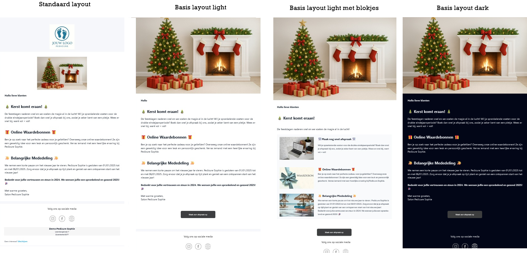 Hieronder de voorbeeldjes van de verschillende lay-outs.