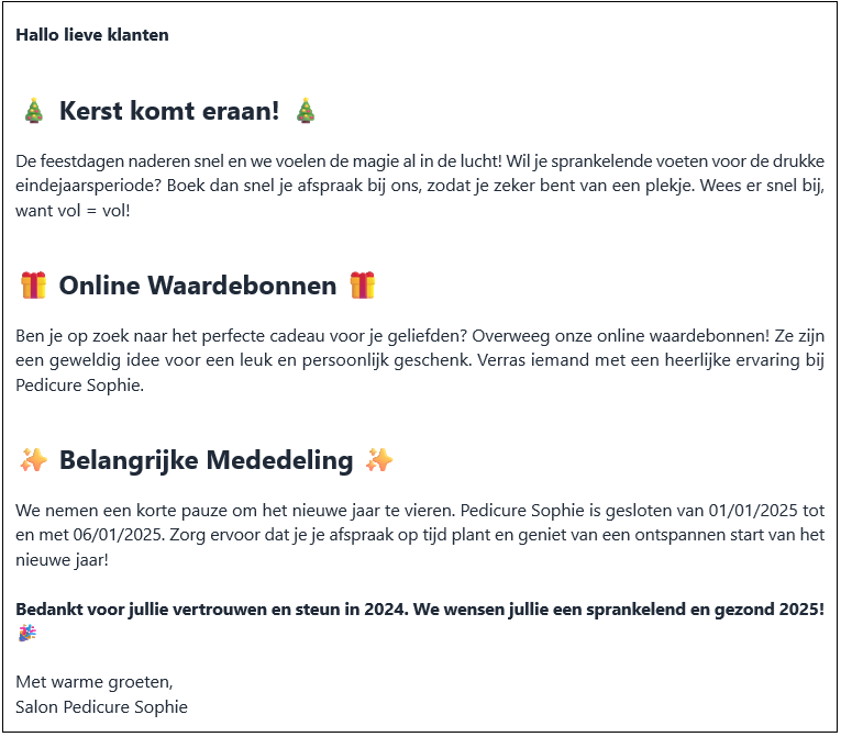 * Logo staat automatisch op nieuwsbrief (wanneer je logo hebt toegevoegd bij je gewone mailinstellingen).