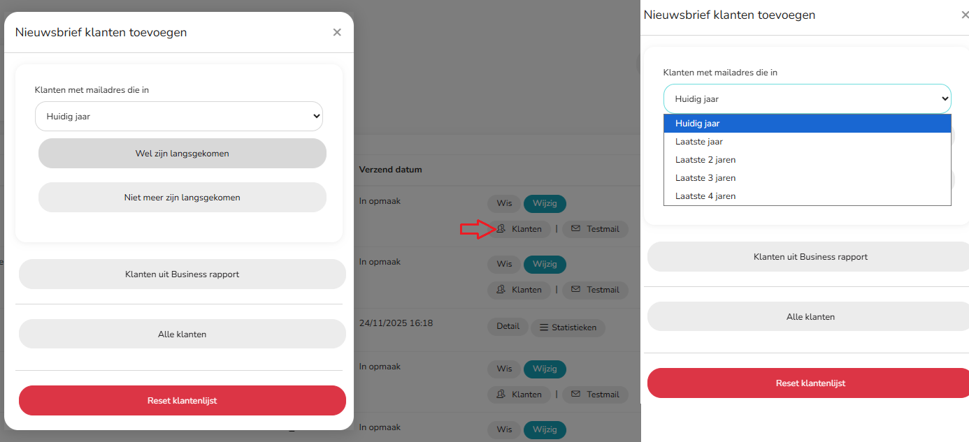 Nu kan je kiezen naar welke klanten je deze brief wilt versturen:
