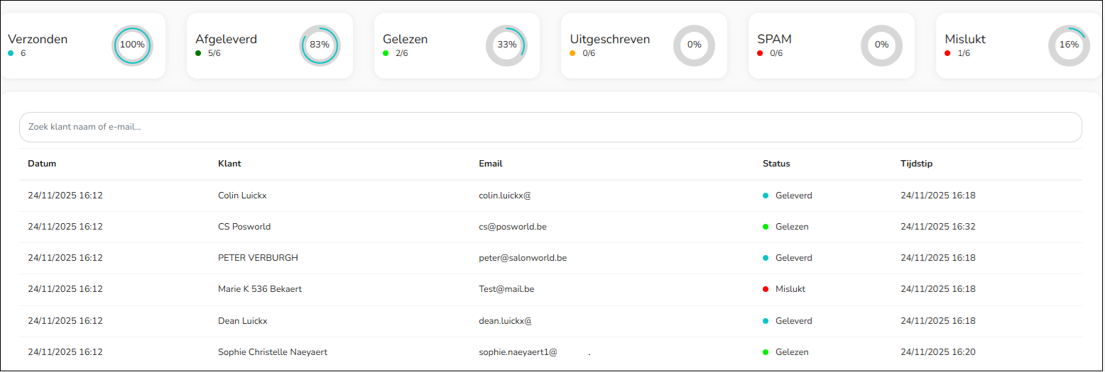 - hoeveel mislukt (bv mailadressen die niet correct zijn)