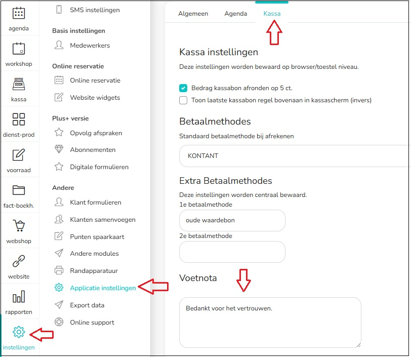 Wil je graag iets toevoegen onderaan op kassabon?